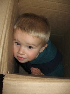 The bear rug came in a friendly -sized box, perfect for little people to get into. Bowden really went crazy and rode it down the stairs, fell in it on purpose, and a number of other activities that happened once before I vetoed them. It wasn't until we were downstairs and fully awake that I pulled out the camera to capture some of the fun. The box was Jack-sized.